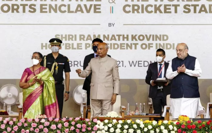 (राष्ट्रपति रामनाथ कोविंद ने गुजरात के अहमदाबाद में 24 फरवरी 2021 को दुनिया के सबसे बड़े क्रिकेट स्टेडियम का उद्घाटन किया है | इस कार्यक्रम में केंद्रीय गृह मंत्री अमित शाह ने ऐलान किया कि इस स्टेडियम का नाम ‘नरेंद्र मोदी स्टेडियम’ होगा |)