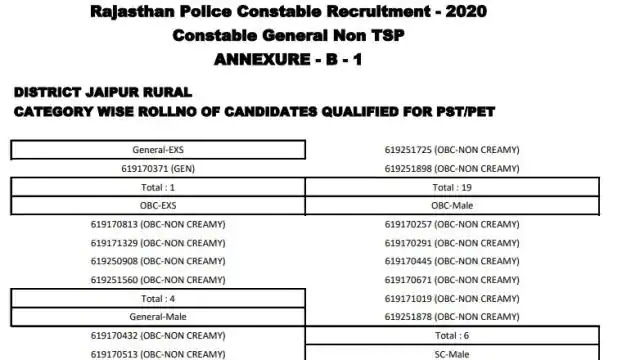 Rajasthan Police Constable Result 2021: Six district examination results released